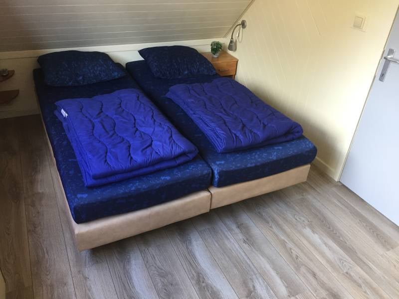 De tweede slaapkamer is eveneens voorzien van 2st enkele boxspring bedden, nachtkastje, kledingkast en voldoende opbergruimte voor koffers en tassen.